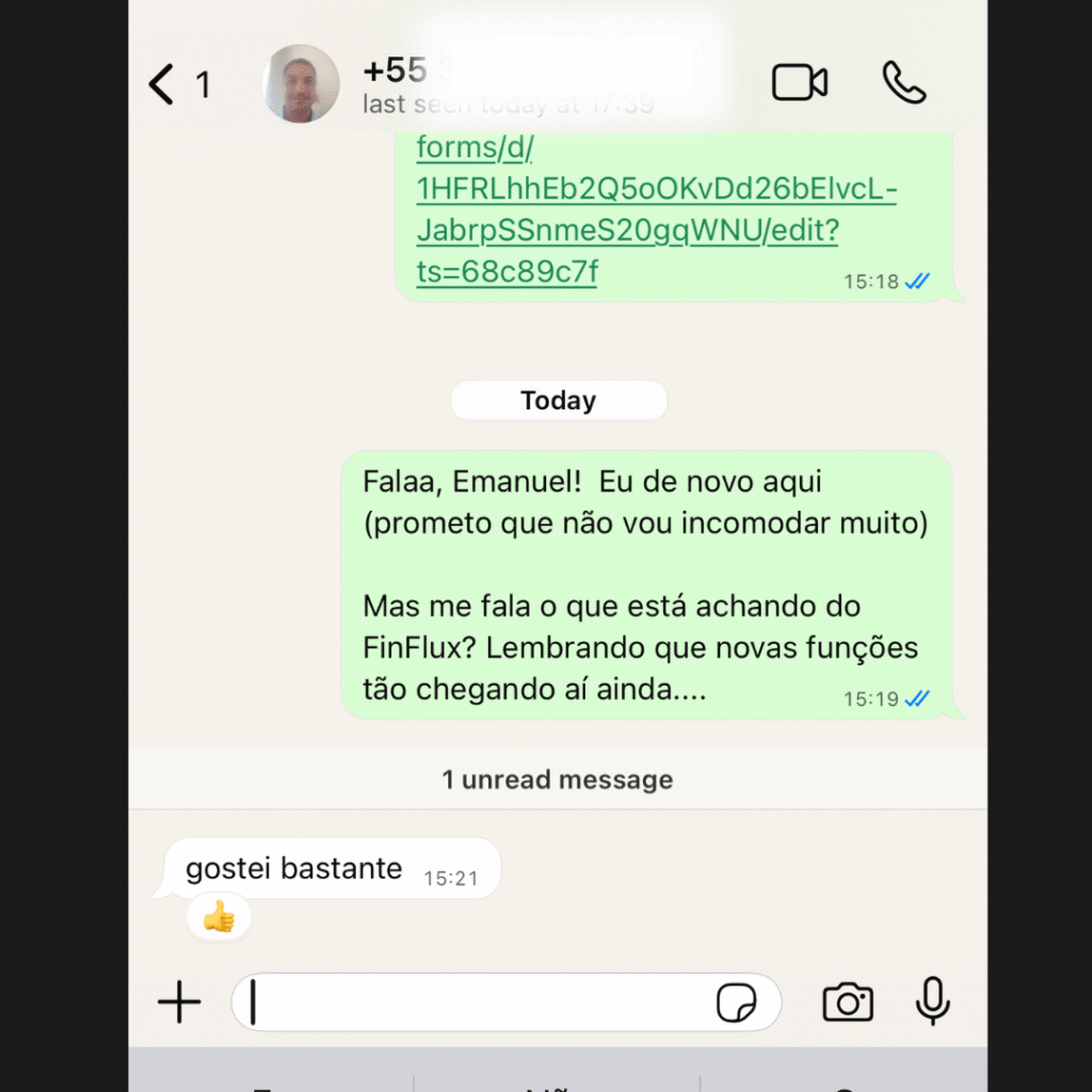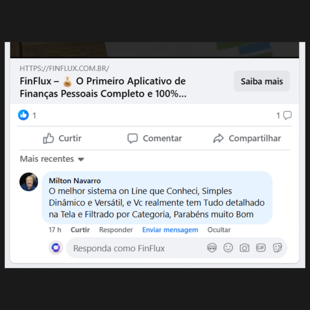 “Uso e indico.” - Satisfação Geral: Há um sentimento claro de satisfação entre os usuários que encontraram no FinFlux uma solução eficiente para controlar suas finanças, como expressa um deles: